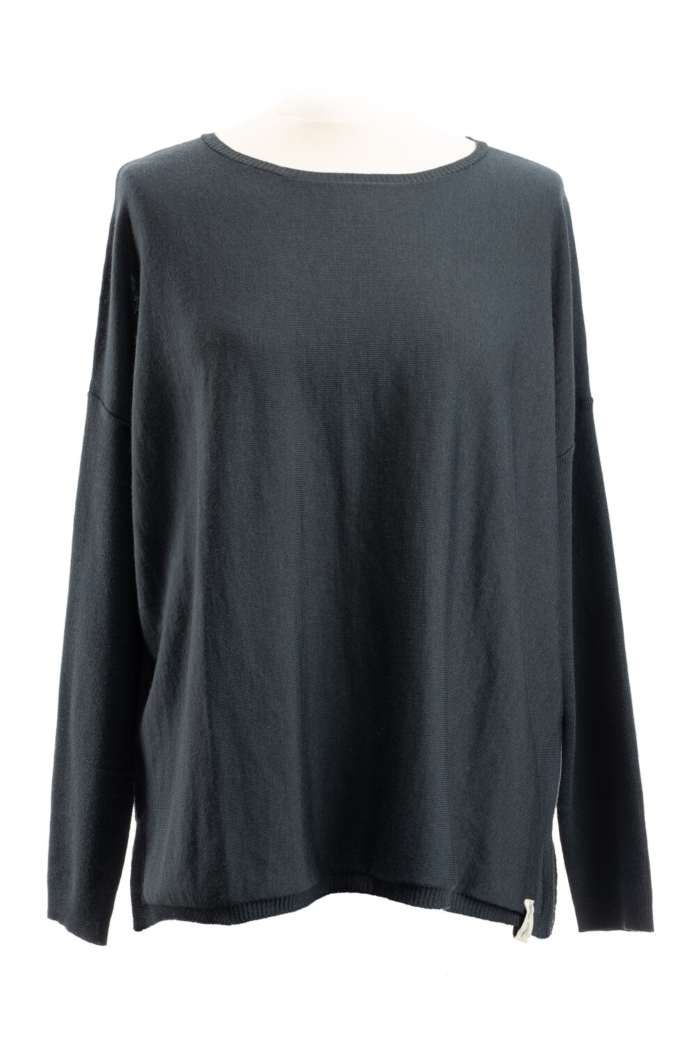 weiter Rundhalspullover mit überschnittenen Schulten. 100% Wolle ( Merino ). Maschinenwäsche kalt.