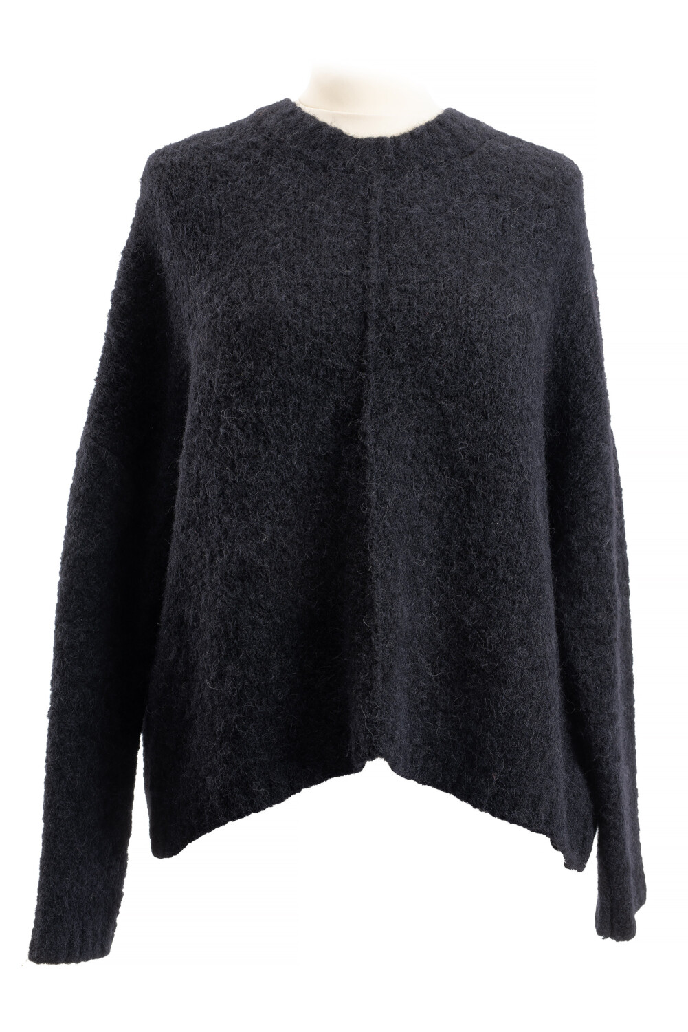 Rundhalskastenpullover SMOOTH mit Naht im Vorderteil. 51% Alpaka, 28% Wolle, 18% Polyamid, 3% Elasthan. Handwäsche kalt. Made in Europe.