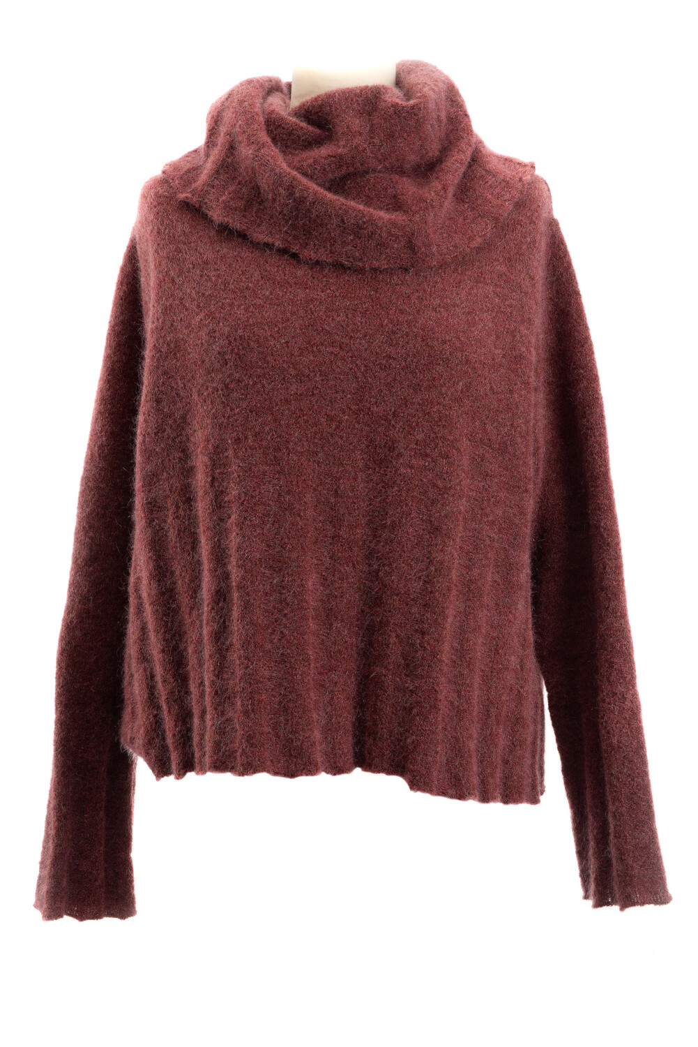 kuscheliger Pullover mit großem Kragen. 38% Superkid Mohair, 38% Merinowolle, 19% Polyamid, 5% Eöasthan. Handwäsche kalt. Made in Europe.