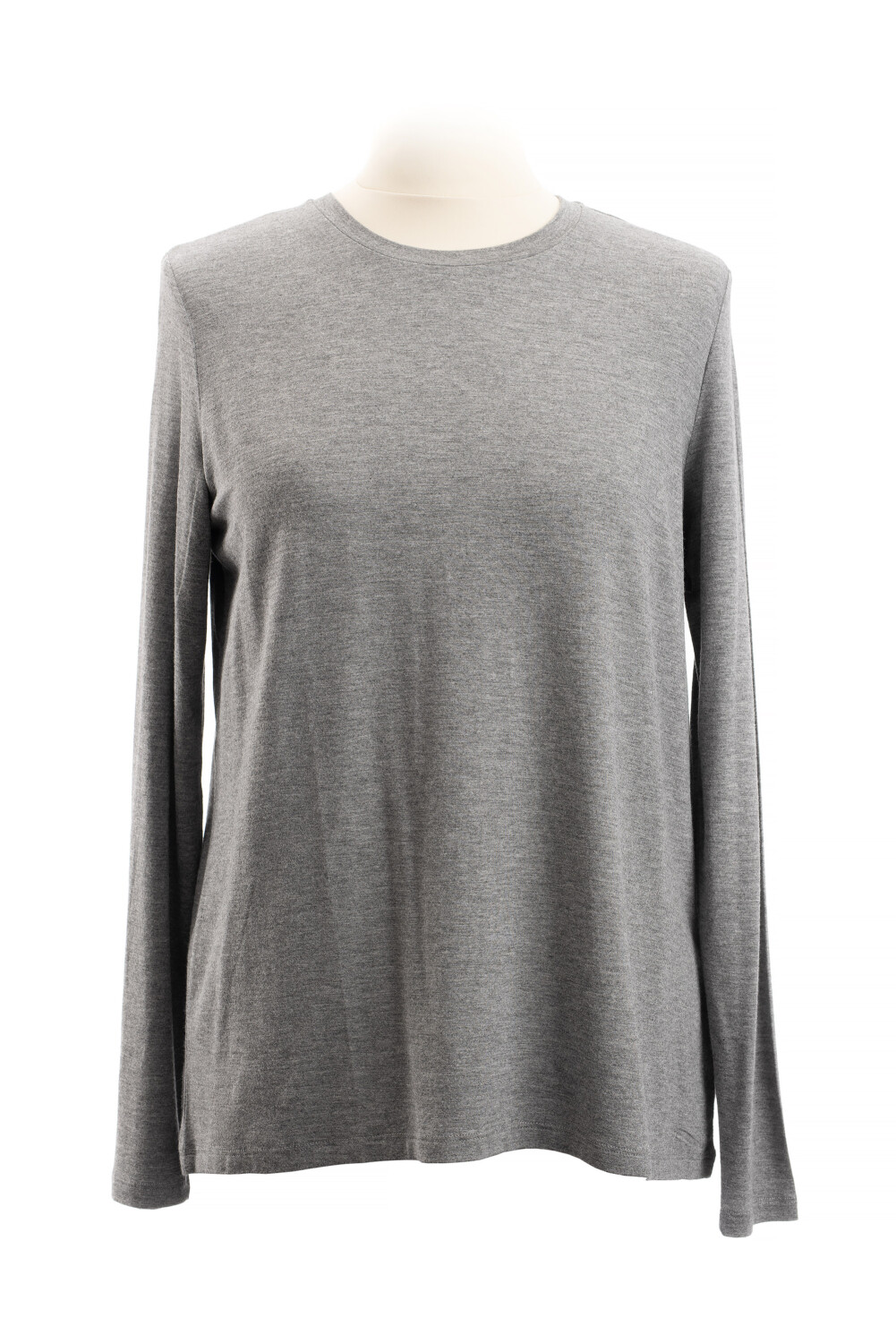 Langarmshirt mit Falte im Rückteil, Hinten etwas länger. Soft Touch. 94% Viskose, 6% Elasthan. 30° waschbar. Made in Portugal.