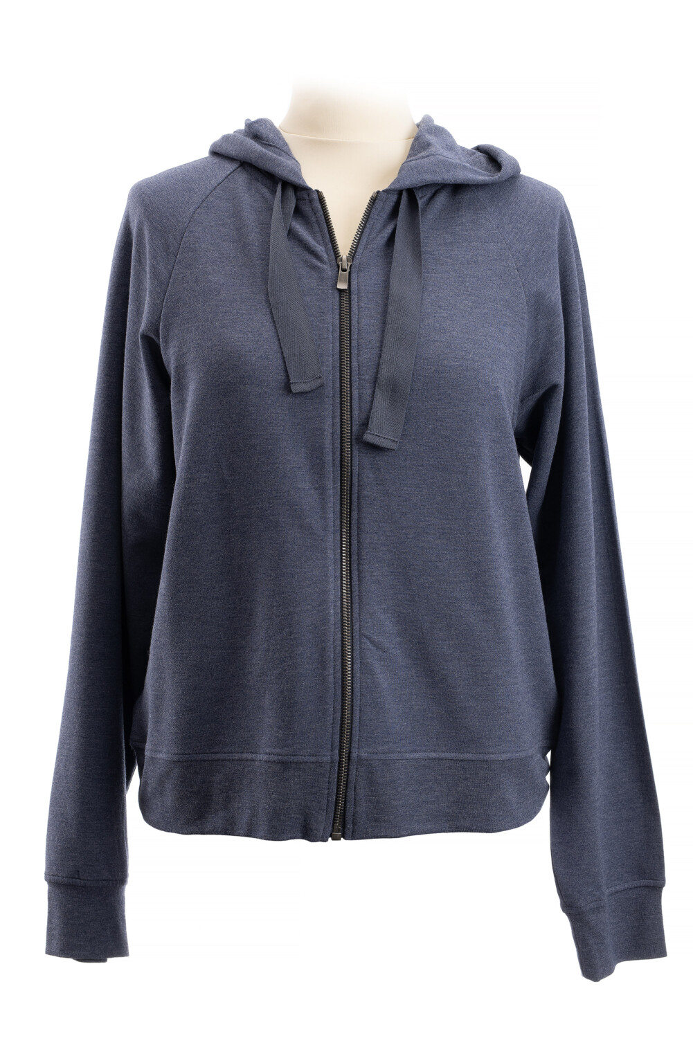 Soft Touch Sweatshirtjacke mit Kapuze und Reißverschluss. 96% Viskose, 4% Elasthan. 30° waschbar. Made in Portugal.