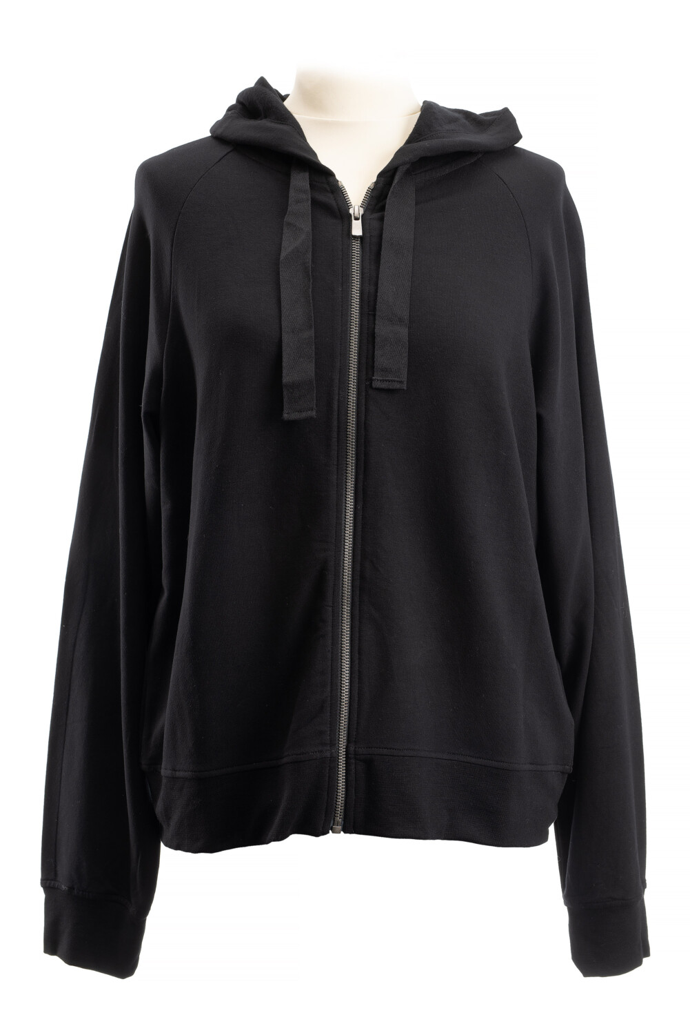Soft Touch Sweatshirtjacke mit Kapuze und Reißverschluss. 96% Viskose, 4% Elasthan. 30° waschbar. Made in Portugal.
